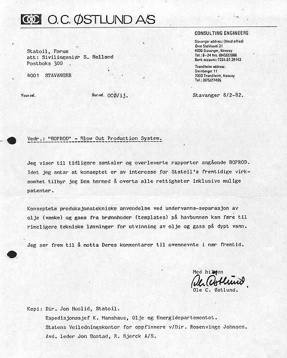 angående undervannsproduksjon av olje og gass "BOPROD"