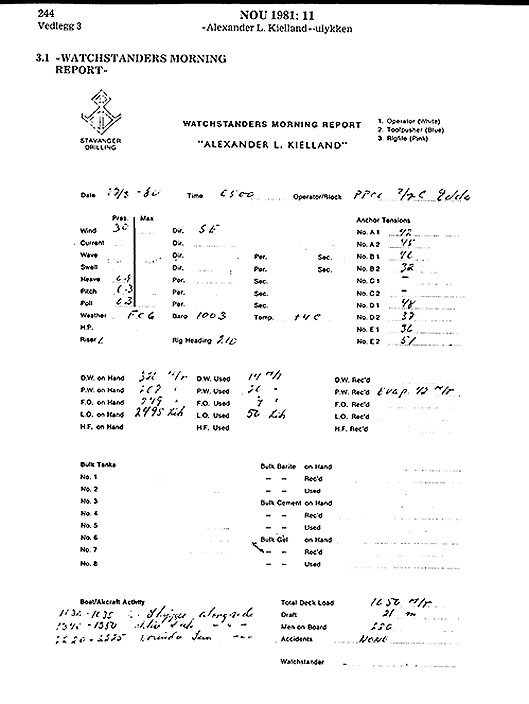 fra plattformen. Rapporter om narkotikaen på "Kielland"