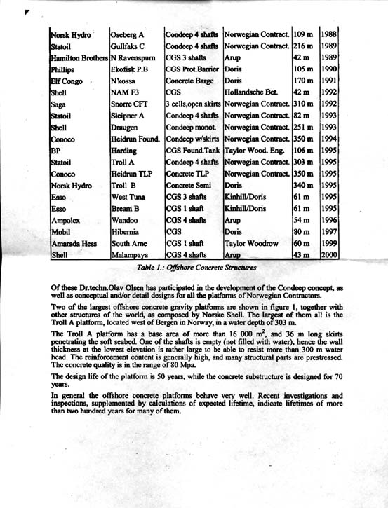 Ref. liste over leverte betongplattformer bygget i Norge, se vedlegg: ”Recycling of Offshore Concrete Structure” Dr. Tech. Olav Olsen