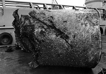 The one test piece was a rectangular steel sample some distance from the breaking zone to be used as material reference. The position of this "reference piece" in relation to the breaking zone is shown on photo 2.2.1, i.e. the rectangular hole on top of the D4 bracing shown on the photo. The other, "major test piece" was a part of the breaking zone as marked on photo 2.2.2 and shown on photo 2.2.3.