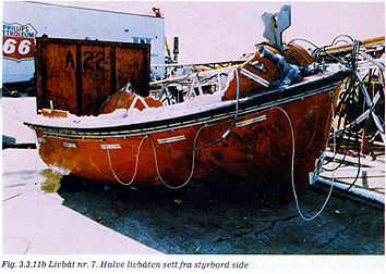 The lifeboat producer Harding asked for the damaged lifeboats to be taken to their plant for examination in order to improve future design and construction. Their request where denied. The wrecked lifeboats where summer 1980 dumped on Stavanger garbage area and covered by 7meters of garbage.
