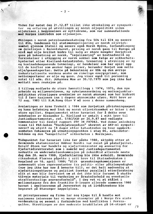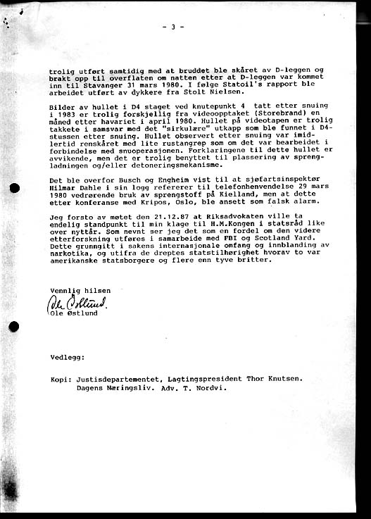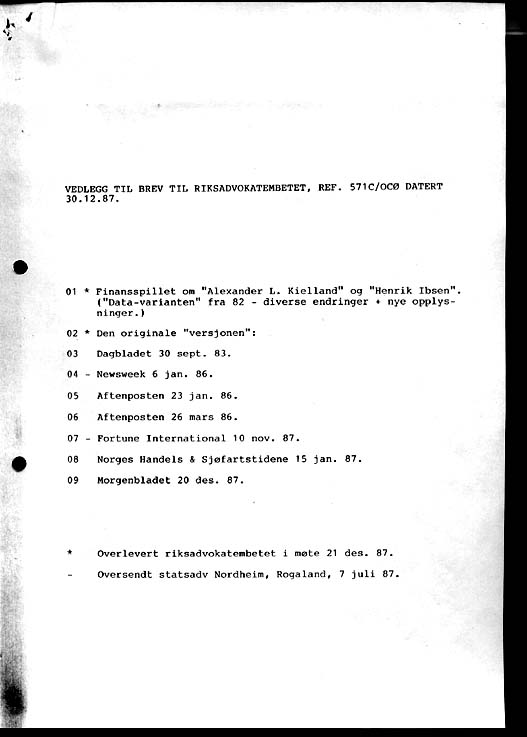Letter to Norways Attorney General of December 30th 1987, sent by registered mail: Rik 30.12.87 page 1 Rik 30.12.87 page 2 Rik 30.12.87 page 3 Rik 30.12.87 Page 4; List of attachments Return