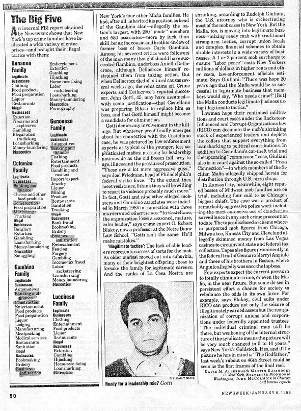 report published in Newsweek/January 6, 1986 page 49,50 "U.S. Affairs