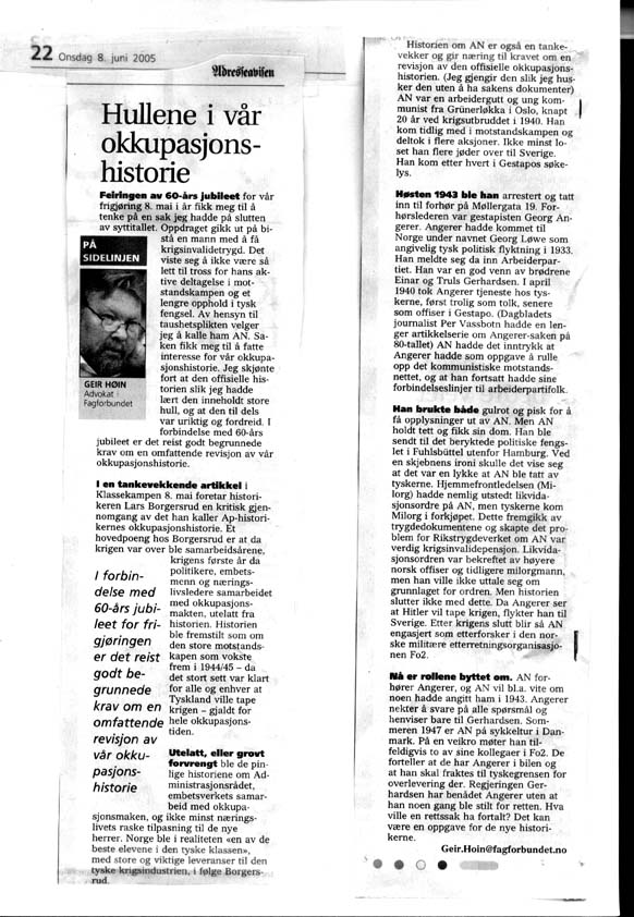 8 juni 2005, "Hullene i norsk okkupasjonshistorie". Personlig