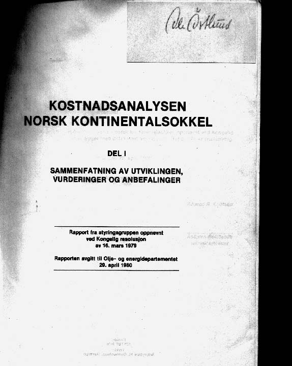 This section deals with the Norwegian Oil and Gas Cost Analysis which where finalized in mid February 1980. However, the Committee also known as the "Moe Committee" after its chairman Dr. professor Johannes Moe, did not publish their official report before end of April |980.