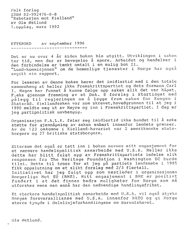 - "Etterord" av september 1996, en side