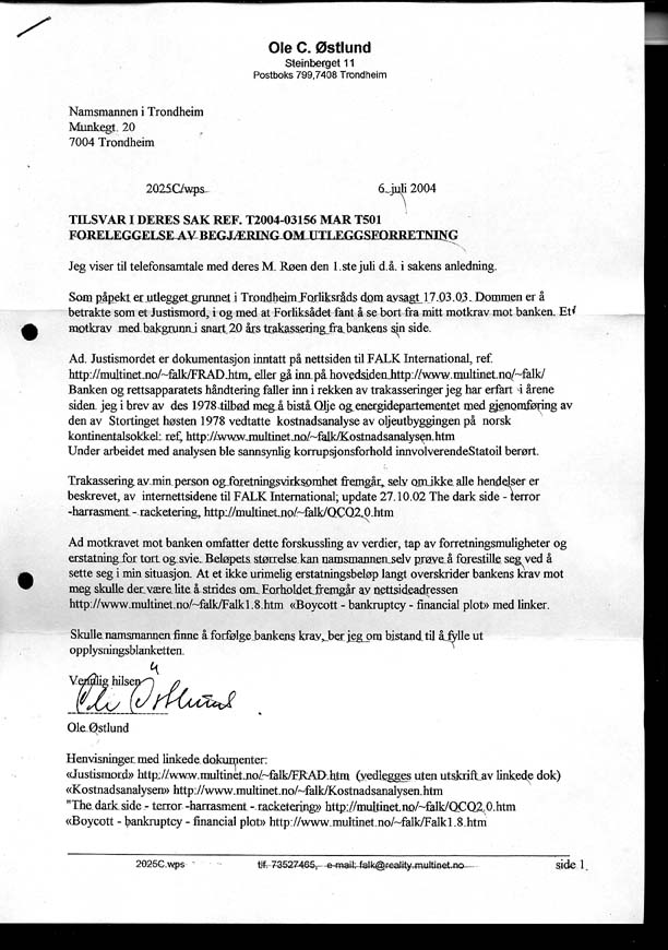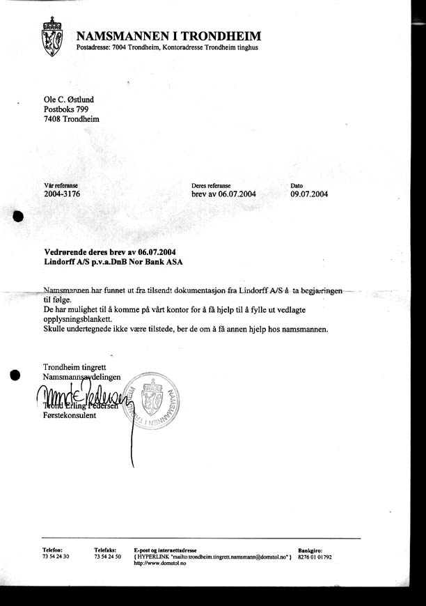 som svar på mitt brev av 06.07.2004 vedrørende