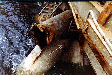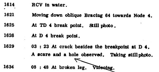 I also would like to draw your attention to the report of Bloms Oppmåling where a “scare and a hole” is reported found at the braking point of bracing D4 at node 4. What have caused the scare? And what have caused the hole?