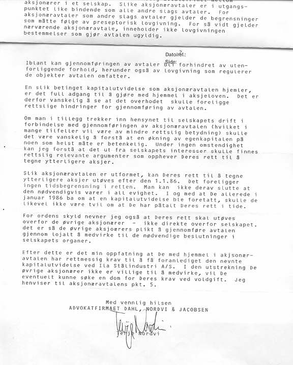 og forholdet til de øvrige aksjonærer i Ila Stålindustri